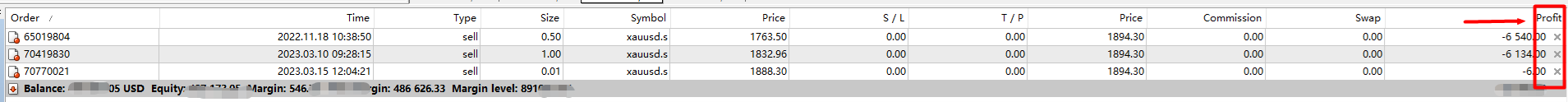 طريقة العرض: حدد "تداول" في شريط القائمة السفلي في MT4 وتحقق من ترتيب المركز. إذا تم عرض x في نهاية الأمر ، فهذا يعني أنك تستخدم حاليًا كلمة مرور الاستثمار (كلمة مرور المراقبة) لتسجيل الدخول إلى الحساب