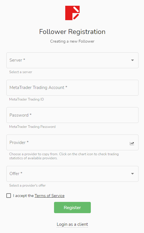- servidor:Seleccione un servidor (tenga en cuenta que CopyTrading actualmente admite cuentas de servidor MT4-Live1, MT4-Live3, MT4-Live4, MT4-Live5 y MT4-Live6)