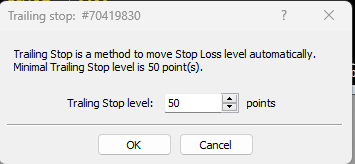 Haga clic en "Negociar" en la barra de la terminal para ver las órdenes existentes, luego haga clic con el botón derecho para seleccionar la orden de espera, haga clic en "Trailing Stop" y seleccione "Personalizado", y complete la cantidad de puntos de parada dinámica que necesita establecer.
