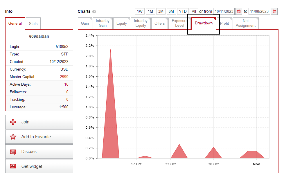 사용자는 PAMM 계정의 "고급 통계" 페이지에서 "현재 하락폭"을 확인할 수 있습니다.
