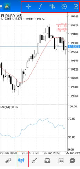 Selecione a variedade correspondente (aqui, tome o euro e o dólar como exemplo), clique no botão do gráfico de velas e selecione o botão indicador "f".