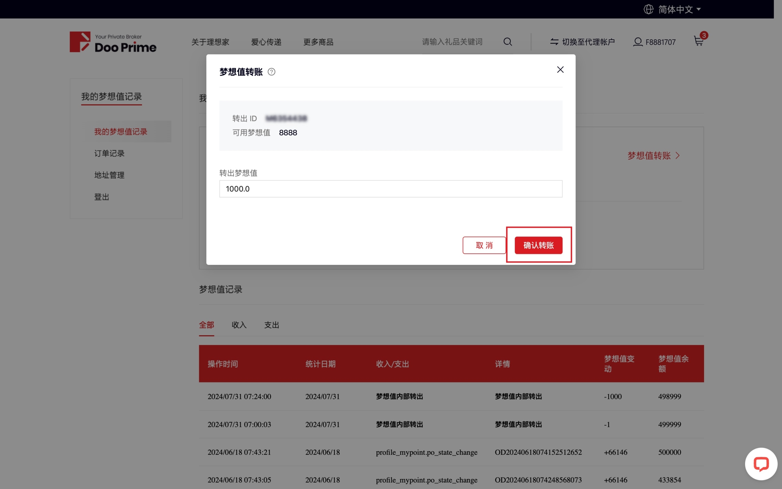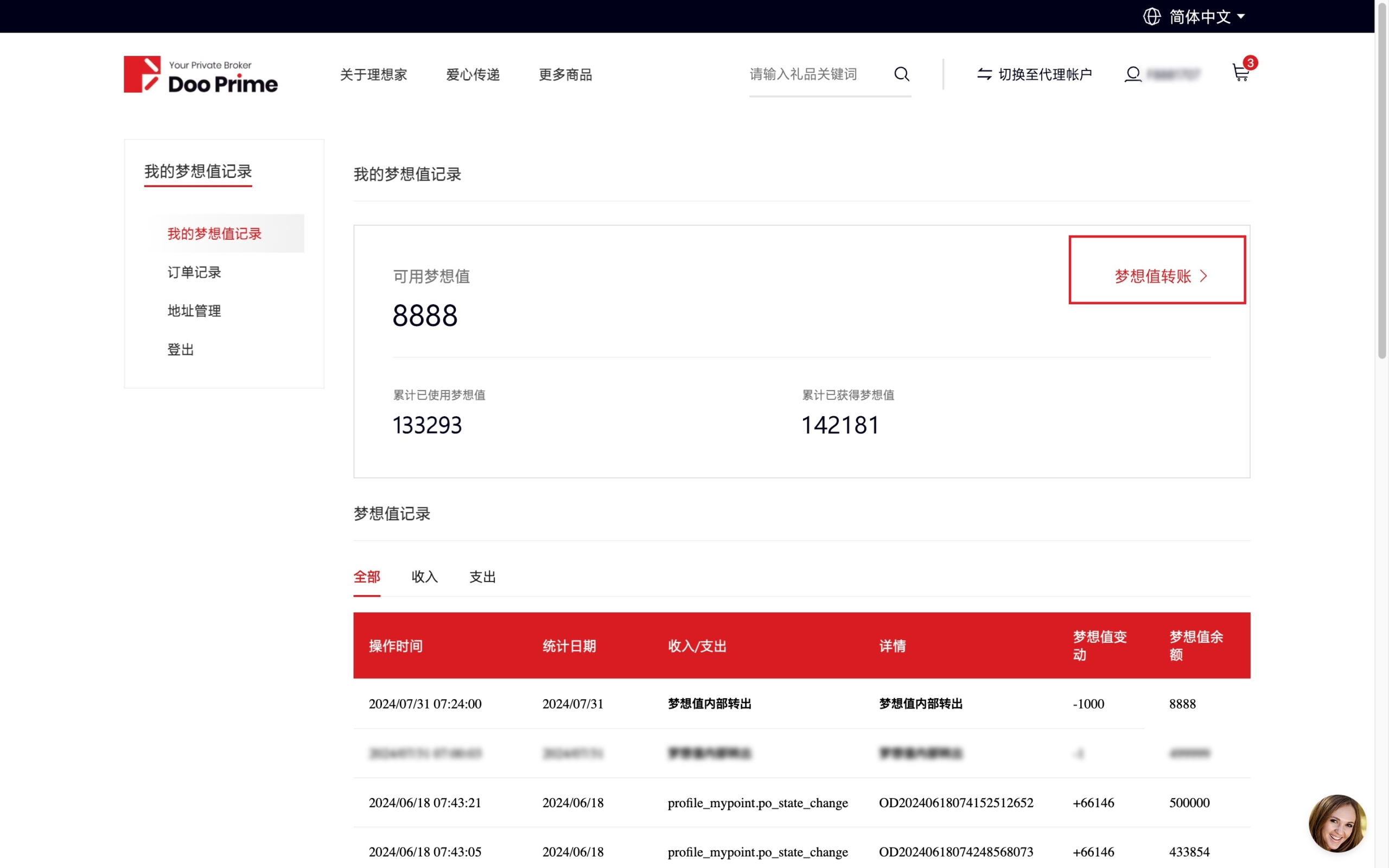 您的梦想值积分可在个人同名客户或同名代理账号之间互相转移及用作兑换商城中提供的礼品或服务,但不可转移、折现或交易给其他客户。