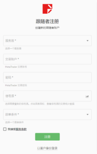 成功注册跟随者后,点击主页面右上方的【新增跟随者】,然后依次填写【交易账户】、【信号源】和【跟单条件】,并勾选【我接受服务条款】。