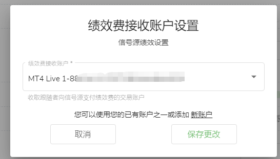 2. 在弹窗内选择想要接收绩效费的账户,点击「保存更改」即可。