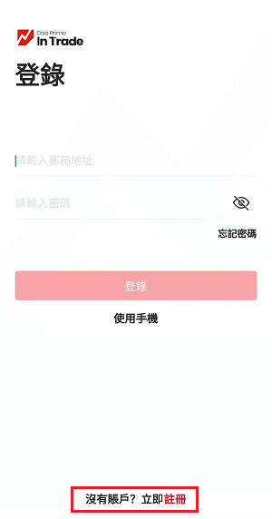 如您没有 D Prime 用户中心的账户,请点击打开应用程序 — D Prime InTrade,于界面底部点击「注册」。