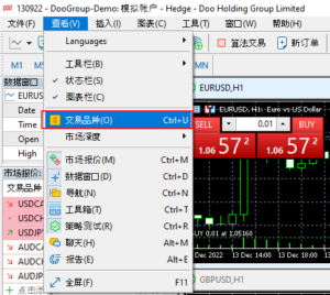 2. 在菜单栏中选择【查看】后点击【交易品种】:
