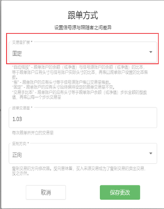 最小手數:跟隨者可選擇跟隨交易量的最小手數。信號源的交易量低於設置的交易量時,將不會跟隨。