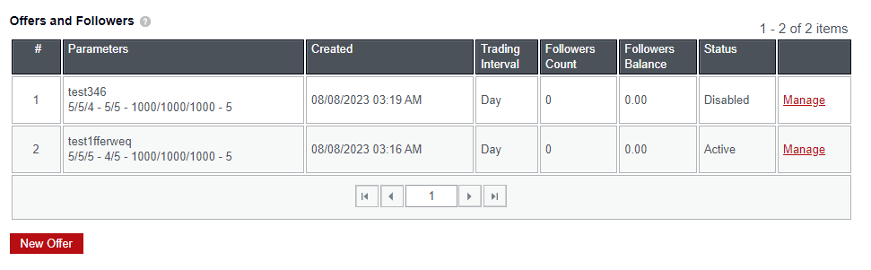b. 點選「New Offer」(新建報價)。報價和追蹤者表顯示有關所有報價的信息,它們的狀態,追蹤者的數量以及每個報價的總「追蹤者餘額」。
