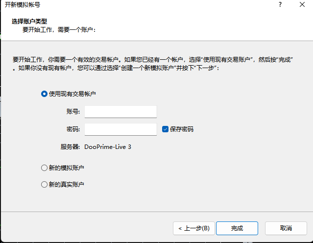 1. 打開MT4 客戶端點擊左上角「文件」選擇「開新模擬賬戶」。