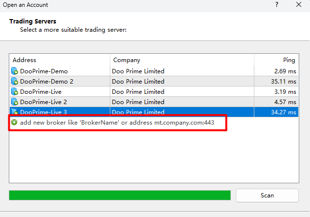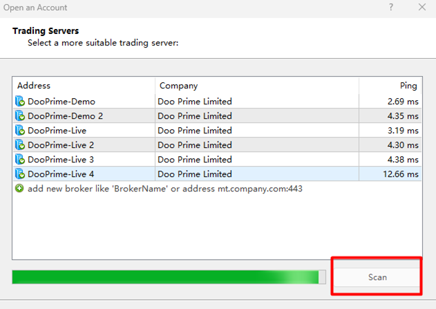 2. Vui lòng nhấp vào nút "+" ở dưới cùng, nhập "DooPrime-Live3" vào khoảng trống và nhấp vào "Quét".