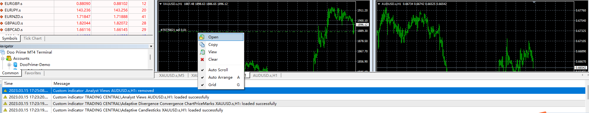 Vui lòng đăng nhập vào MT4 và nhấp chuột phải vào "Nhật ký" trên thanh menu dưới cùng và chọn "Mở", sau đó bạn có thể tự lưu nhật ký giao dịch đã chọn.